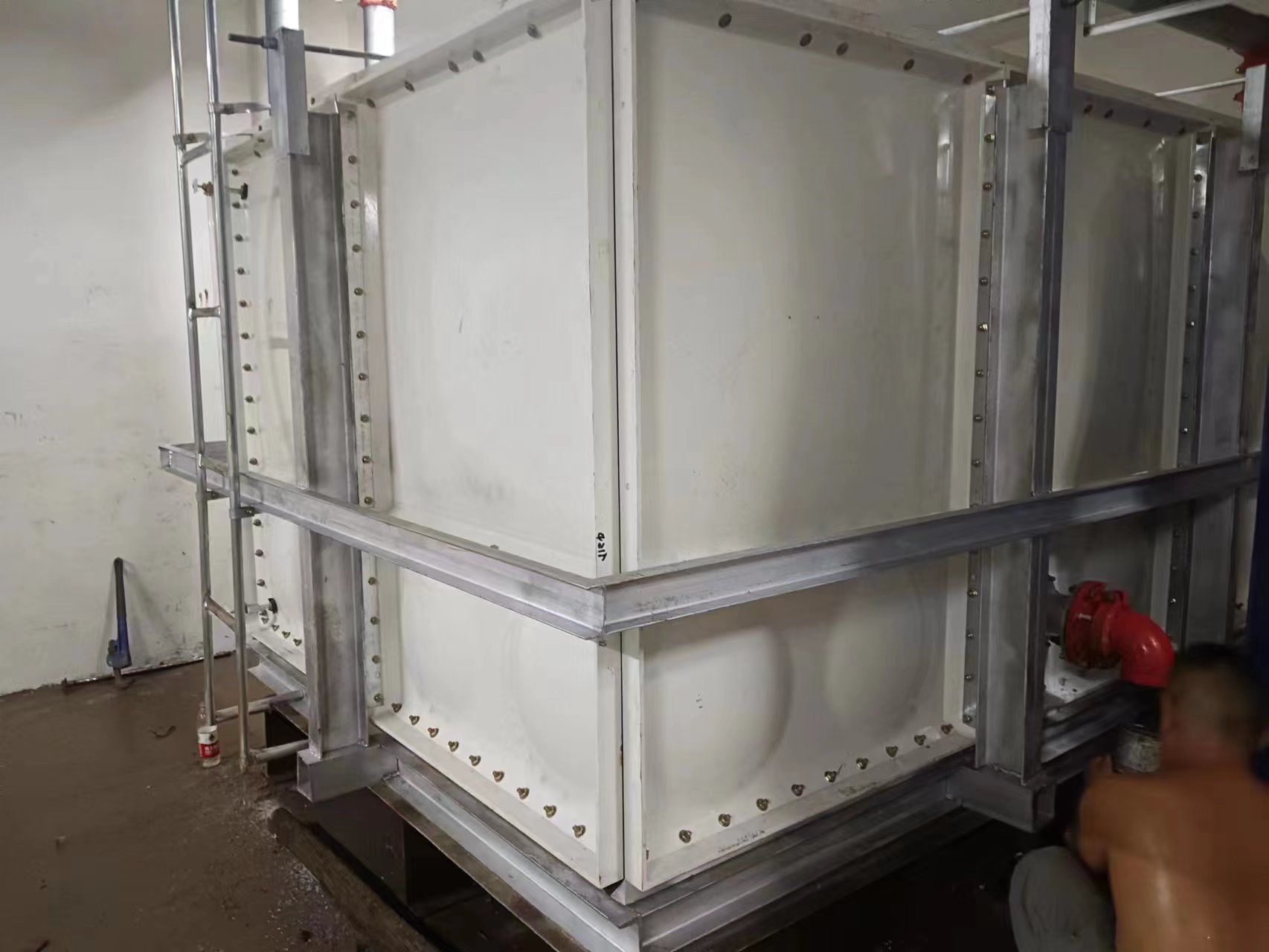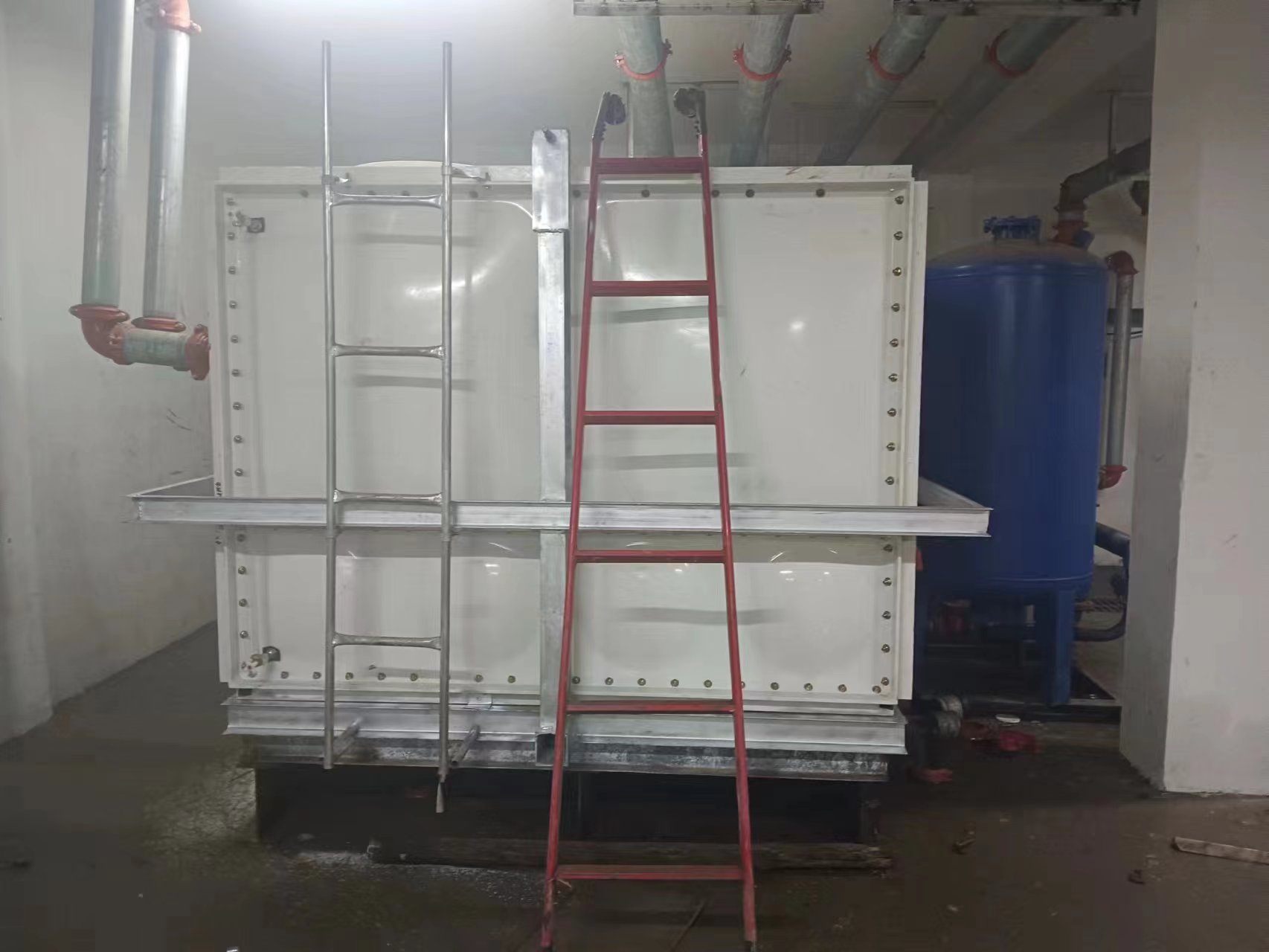 由于使用環(huán)境及使用介質(zhì)所限,有些水箱內(nèi)部盛有高濃度溶液,如:濃鹽水、海水等,對(duì)水箱內(nèi)壁鋼板會(huì)有嚴(yán)重腐蝕,因此無法采用不銹鋼水箱或者鋼板水箱。正常玻璃鋼水箱板可以耐腐蝕,但是水箱內(nèi)部又設(shè)有鋼制拉筋支撐等,故此也不適用以上介質(zhì)使用。為了滿足特殊用戶的使用需求,經(jīng)過承重及承壓測(cè)試后,這種無內(nèi)件玻璃鋼水箱面世,它采用不同規(guī)格(1000*1000mm、1000*500mm、500*500mm)的玻璃鋼模壓板組裝,水箱內(nèi)部沒有設(shè)任何鋼制配件,水箱外部及底部采用工字鋼加固,所有法蘭采用ABS材質(zhì)俗稱塑料材質(zhì),外觀整潔無變形,內(nèi)部無配件,易清洗、維護(hù)方便,延長了水箱的使用壽命,滿足特殊用戶的特殊需求。