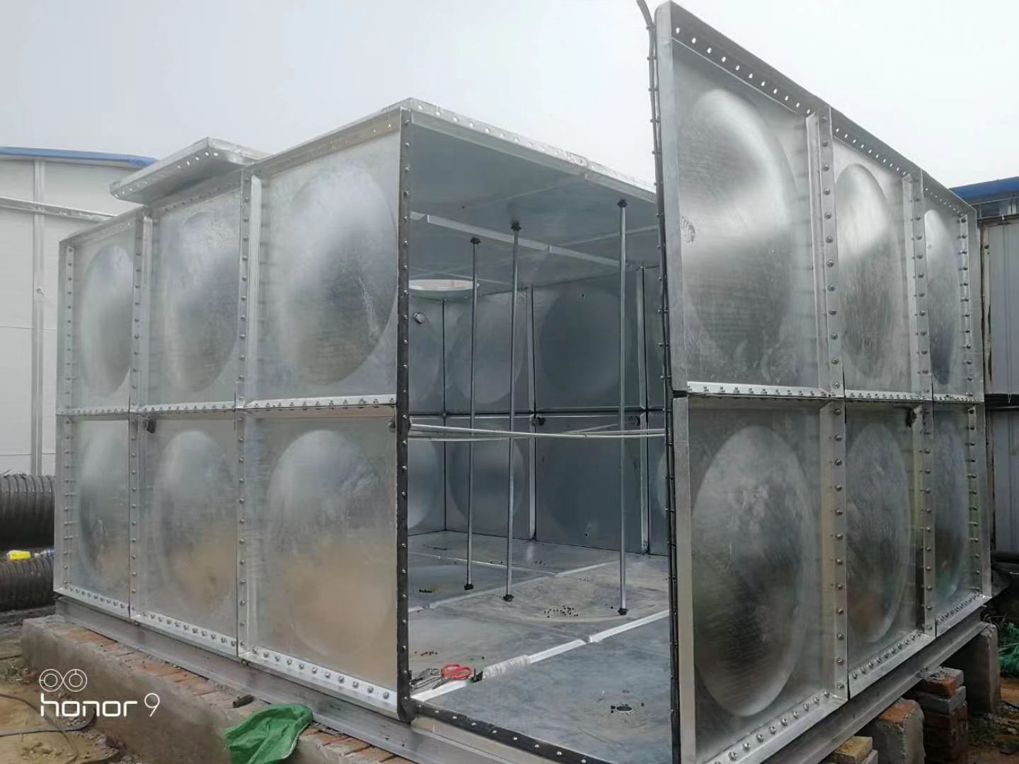 2.安裝的時(shí)候組合板之間要加好橡膠條,底板組裝完畢后在進(jìn)焊好的底座上。整個(gè)水箱外層組裝好以后,支撐要穩(wěn)固,拉筋要均勻。以保障正常使用。