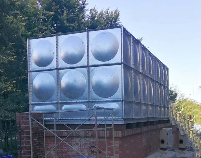 鍍鋅鋼板水箱是按照02S101制造生產(chǎn)的新型裝配式水箱,采用Q235鋼板,沖壓形成1000*000和1000*500 500*500的標(biāo)準(zhǔn)塊,周邊鉆孔,經(jīng)鍍鋅處理,現(xiàn)場(chǎng)進(jìn)行組裝,組裝時(shí)標(biāo)準(zhǔn)塊之間硅膠密封,螺栓連接。該水箱制造、安裝均不受土建施工影響,不用焊接設(shè)備,表面采用熱鋅防腐處理,美觀,以免水質(zhì)二次污染,并符合建筑產(chǎn)品標(biāo)準(zhǔn)化、系列化、工廠化要求。